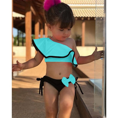 Kids Baby Girls Off-shoulder Bow Bikini Set